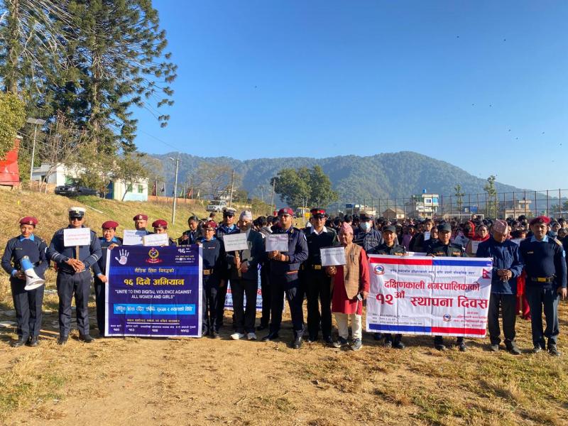 नगरपालिमा स्थापना दिवस, लैङ्गिक हिंसा विरुद्धको १६ दिने अभियान तथा नगरपालिकाको लोगो सार्वजनिकरण कार्यक्रमको केही झलक । मिति २०८२ साल मंसिर २२ गते