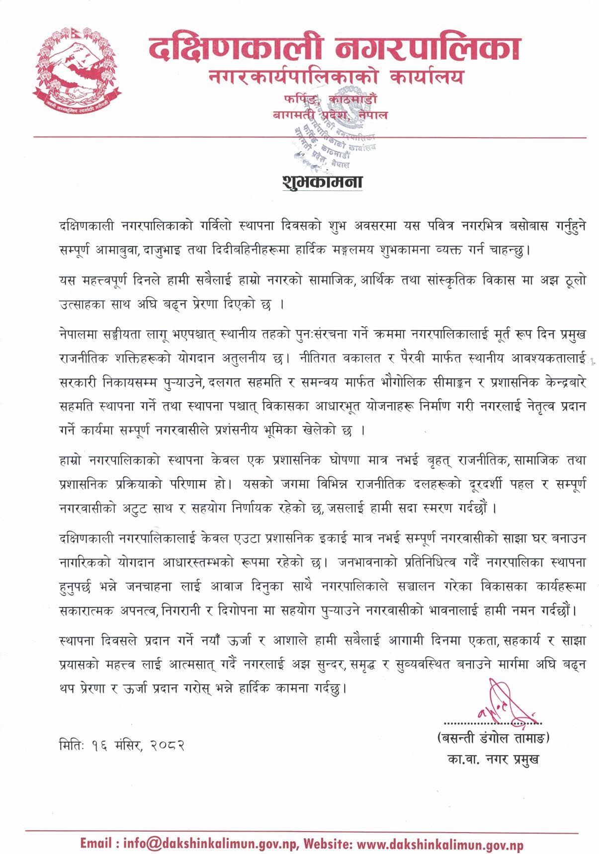 दक्षिणकाली नगरपालिका स्थापना दिवसको शुभकामना !