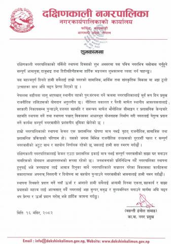 » दक्षिणकाली नगरपालिका स्थापना दिवसको शुभकामना !