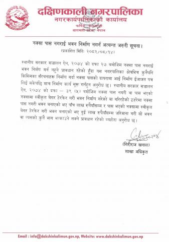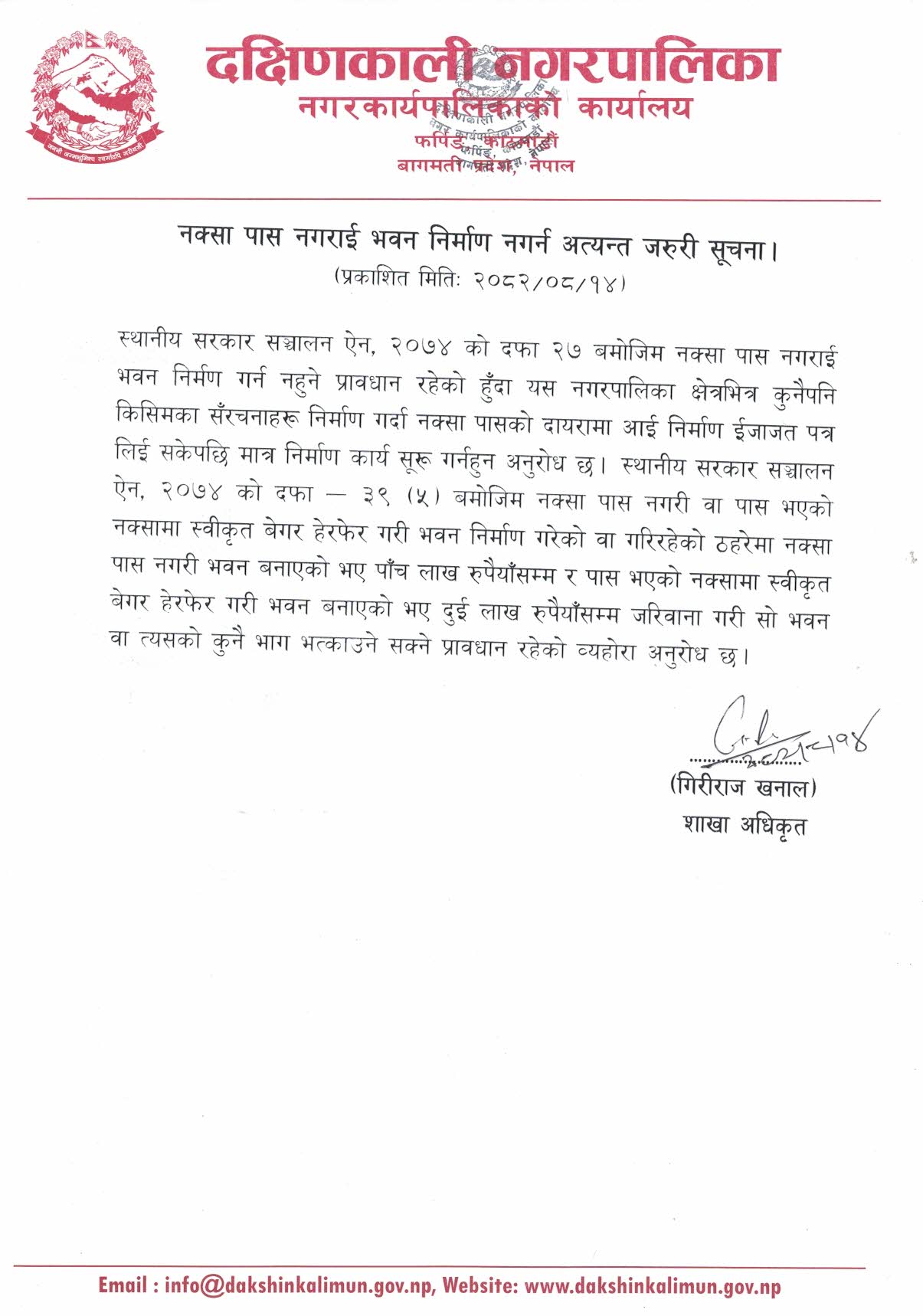 नक्सा पास नगराई भवन निर्माण नगर्न अत्यन्त जरुरी सूचना !