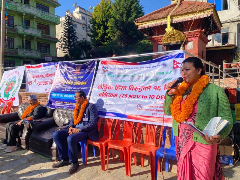 Home » नगरपालिमा स्थापना दिवस, लैङ्गिक हिंसा विरुद्धको १६ दिने अभियान तथा नगरपालिकाको लोगो सार्वजनिकरण कार्यक्रमको केही झलक । मिति २०८२ साल मंसिर २२ गते